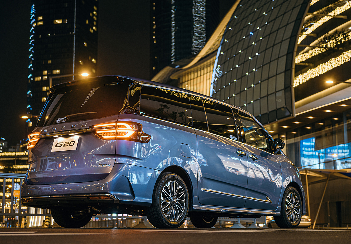 来到车辆的侧后方,车侧线条的“浪尖艺术”设计以及尾部“天空之境”流光LED尾灯,让上汽MAXUS G20依然散发着优雅豪华之气韵。尤其是悬浮式车顶和尾部侧下方的折线式设计,使得整车的动感气息得以显露。
