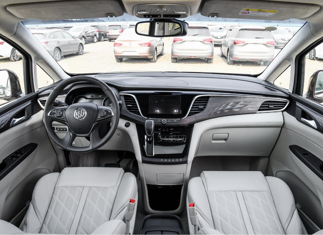 内饰方面,行云流水的线条勾勒着嵌入式人机交互屏幕。木质饰板和皮质包裹的应用也恰到好处,既能凸显出高档感,也不会显得太过于老气。同时,GL8没有设计中央通道,将前排空间完全释放。