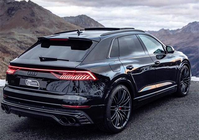 车尾溜背式设计更显灵动,一条平直有力的肌肉线条在车窗下方贯穿车身,比起普通版Q8,新车的车身更加低矮一些。车尾最显眼的无疑就是它那一副贯穿式的LED尾灯了,从之前的A7、A8 (配置|询价)到后来的A6,这种设计已经被越来越多的车型所采用。此外,双边共四出的排气布局和后保险杠下方的碳纤维材质护板,不仅仅从视觉上带来很强的视觉冲击,更能在动力方面帮助车辆进行提升。至于内饰,虽然目前新车并未透露过多信息,但预计新车将会继续沿用普通版的布局设计,而ABT主要增加一些碳纤维材质和特殊标识等,让车厢的充满“战斗”气息。