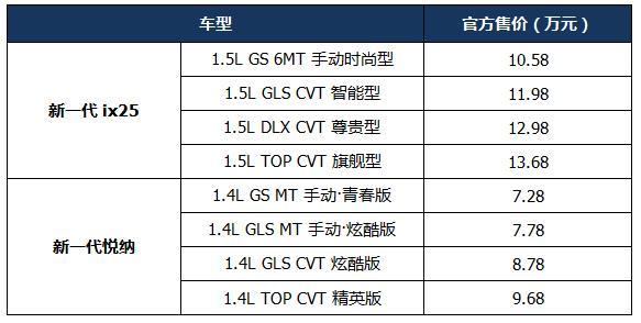 10月30日晚,北京现代新一代ix25与新一代悦纳于重庆正式上市,两款车型分别为品牌旗下定位年轻市场的SUV与轿车代表,此次均推出4款车型可选,其中新一代ix25售价区间为10.58-13.68万元,而新一代悦纳售价区间为7.28-9.68万元。