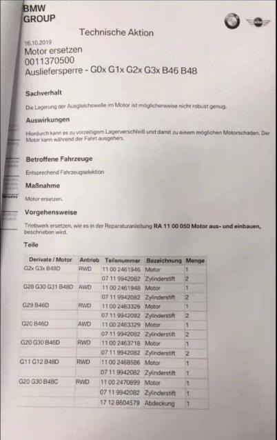 但其实此次国内这件"轴承门"事件早已预料之中。其实早在不久前,在德国社交媒体圈就流传着一份关于宝马召回文件,而文件内容和国内此次叙述的一致:要求经销商停止交付配备B46、B48两种型号发动机的部分车型,因为发动机零件可能导致发动机故障,而且据该文件来由介绍称,具体原因是因为发动机中平衡轴的轴承达不到所需的材料坚固性,这也就会导致轴承过早磨损过亮,并且后期可能还会损坏发动机,当然也有一定的几率导致发动机行驶过程中熄火等现象发生。