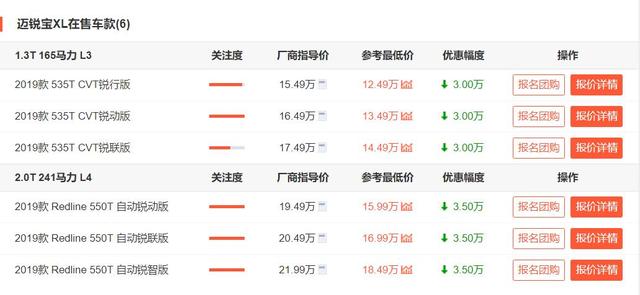 编辑点评:雪佛兰迈锐宝XL是降价市场的常客,由于品牌知名度比别克低,所以它的优惠也是今天所有车型里最大的。外观上,雪佛兰对新款迈锐宝XL的前脸做了重新设计,目的就是让新车看起来更加年轻。该车还推出了Redline版车型,Redline版新车在外观上带有更多黑色元素,进一步突出运动感之后能够更加迎合现在的年轻消费者的审美。