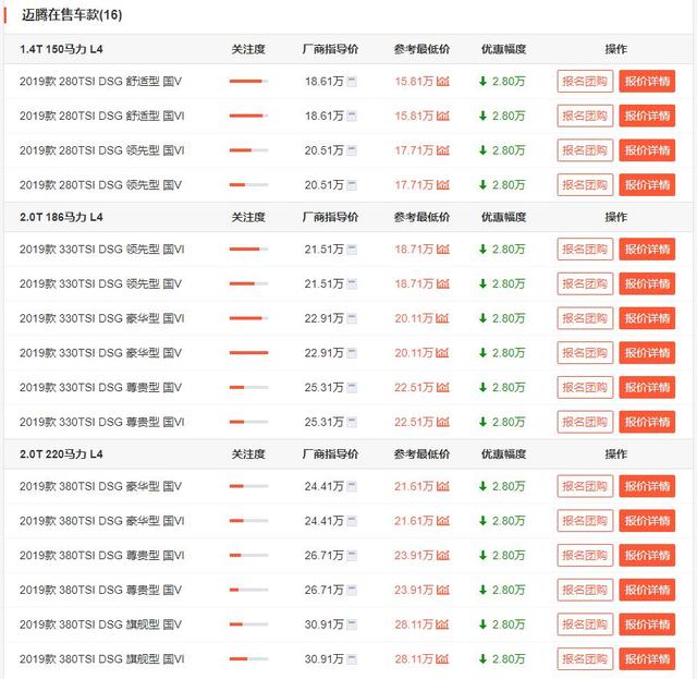 目前,一汽大众迈腾在长沙最高有2.8万元的优惠,2019款车型的入门价仅为15.81万,性价比也可以说是很高的了。同时,当前购车也无附加条件,车身颜色也可选择。