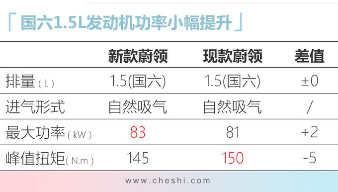 动力方面,蔚领搭载的1.5L自然吸气发动机满足国六排放标准,传动系统匹配6速手自一体变速箱。随着7月1日起全国各地开始陆续实施国六排放标准,现款蔚领在多数城市已经无法上牌,相比之下大众朗逸 (配置|询价)两厢、雪佛兰沃兰多、别克阅朗等竞品车型已经完成了国六版本的更新,此次国六车型的推出将会缓解目前较为尴尬的状况。