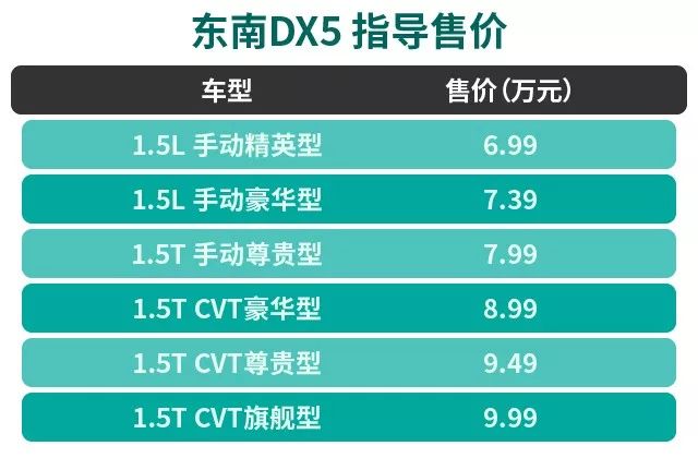 总得来说,东南DX5是一款实力不俗的小型SUV,从外观设计、配置以及动力都是一款极具卖点的车型。当然,售价在7-10万元区间是中国品牌小型SUV的必争之地,各品牌车型高手如云,在这领域虎 (配置|询价)视眈眈。而东南汽车在品牌力不算强的情况下,其面临的压力可想而知。不可否认的是,在众多竞争对手中,东南DX5具备明显的卖点,再加上越级而立的定位以及相对便宜的售价,能否在激烈的市场上分得一杯羹,我们拭目以待。