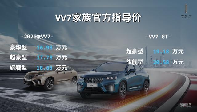 作为WEY品牌的旗舰车型,2020款VV7不仅向更高的标准迈进,还细分为“中国豪华SUV实力担当”的VV7车型与“中国豪华轿跑SUV”的VV7 GT车型,构建起VV7豪华SUV家族。本次上市的2020款VV7售价为16.98-18.88万元,VV7 GT售价为19.18-20.58万元。凭借出色的性能、优雅的设计、领先的科技以及豪华感知,VV7家族将为志在向前的实干精英提供触手可及的豪华体验和更多元化、个性化的购车选择。