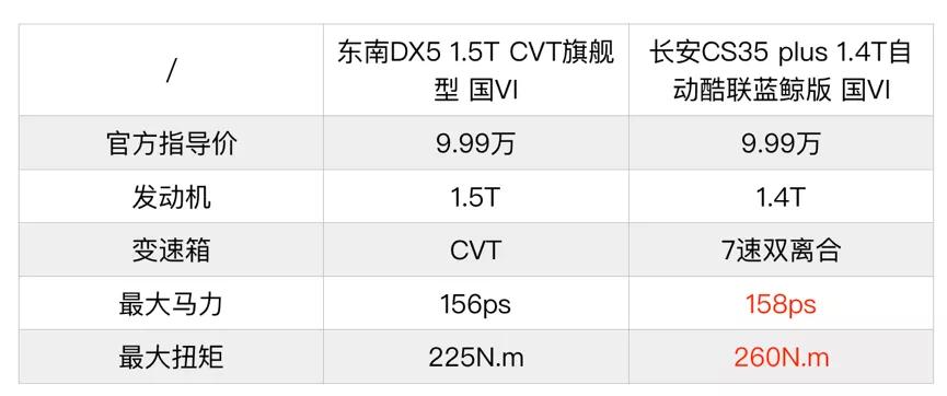 这个级别的小型SUV,大家关心的点无非是空间、动力、配置这几块,当然颜值也很重要,不过这是个萝卜白菜各有所爱的事。我们对比的两台车,东南DX5选择1.5T CVT旗舰型,长安CS35 plus选择1.4T自动酷联蓝鲸版,官方价格均是9.99万,下面从空间到配置再到动力,两台车将进行一番捉对厮杀……