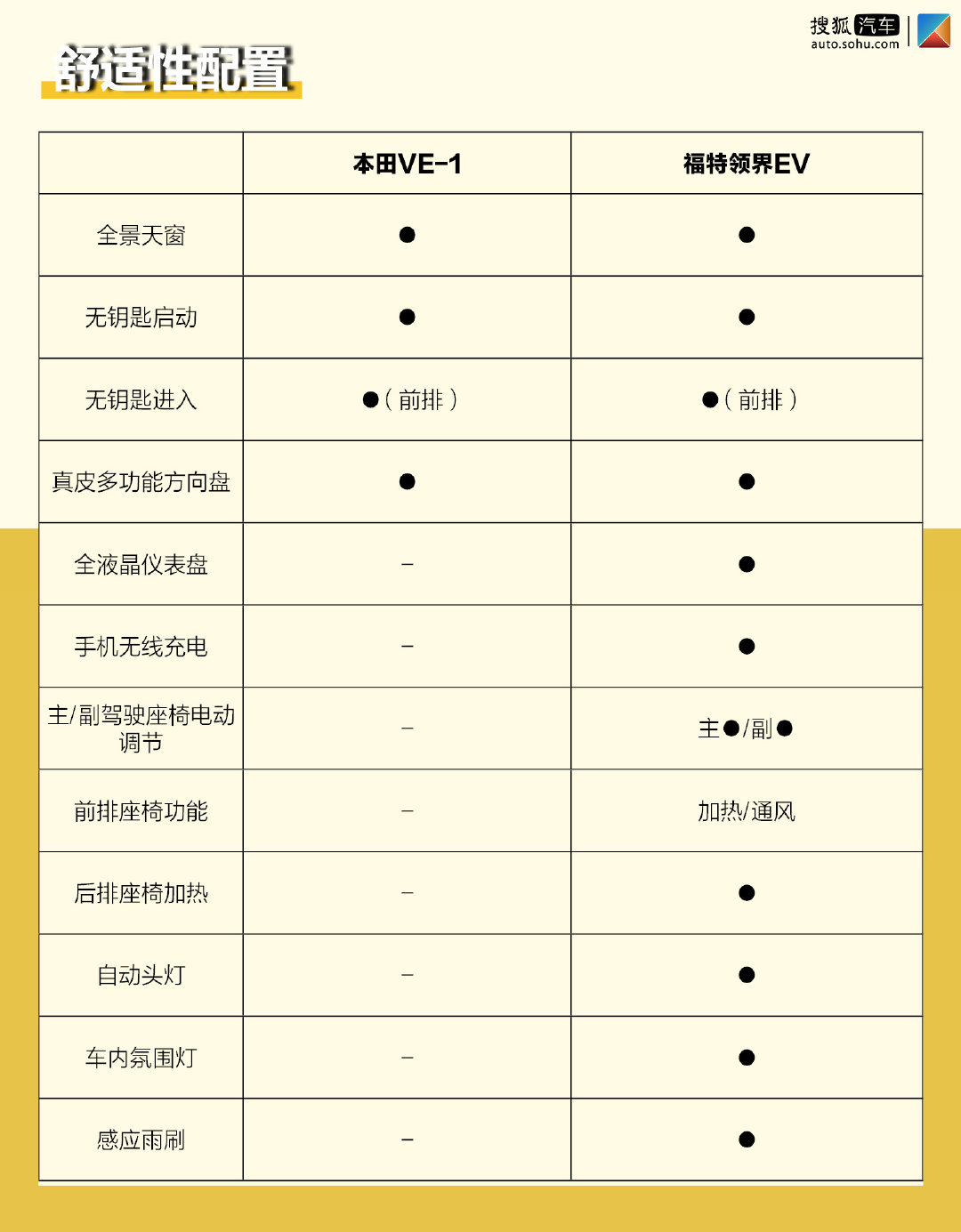通过我们的对比不难看出,因为领界EV的车型定位和售价高于本田VE-1,所以在舒适性配置方面也要明显优于本田VE-1。后者只是具备例如全景天窗、无钥匙进入、无钥匙启动、真皮多功能方向盘等基础配置,领界EV则体现出更加全面的配置表现,用车体验也更佳。