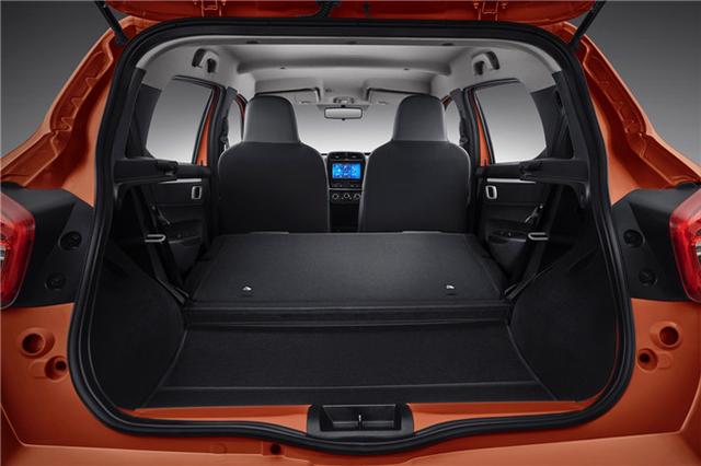 前脸和侧身都采用了蓝黑点状装饰,带着浓厚的新能源车的科技感,尾灯对应车头,不同于传统小车的精致小灯,无论从造型还是比例来看,都尽显大气。车身尺寸方面,风光E1长宽高分别为:3699mmx1579mmx1515mm,轴距2423mm,目前3699mm的车身长度在目前A00级车型中尺寸最长,可见其空间感和乘坐的舒适度也将不同以往,其拥有一个300-1170L超大后备箱,强大空间随心所装。