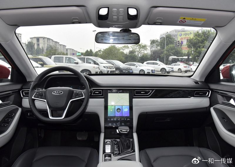 车内对称的中控台较为常规,10.4英寸高清液晶中控屏和7英寸液晶仪表的组合提升了整体的科技感,内置J-Link智聆车联网系统和科大讯飞车载语音3.0系统,与此同时,该车还支持App远程控制等功能。