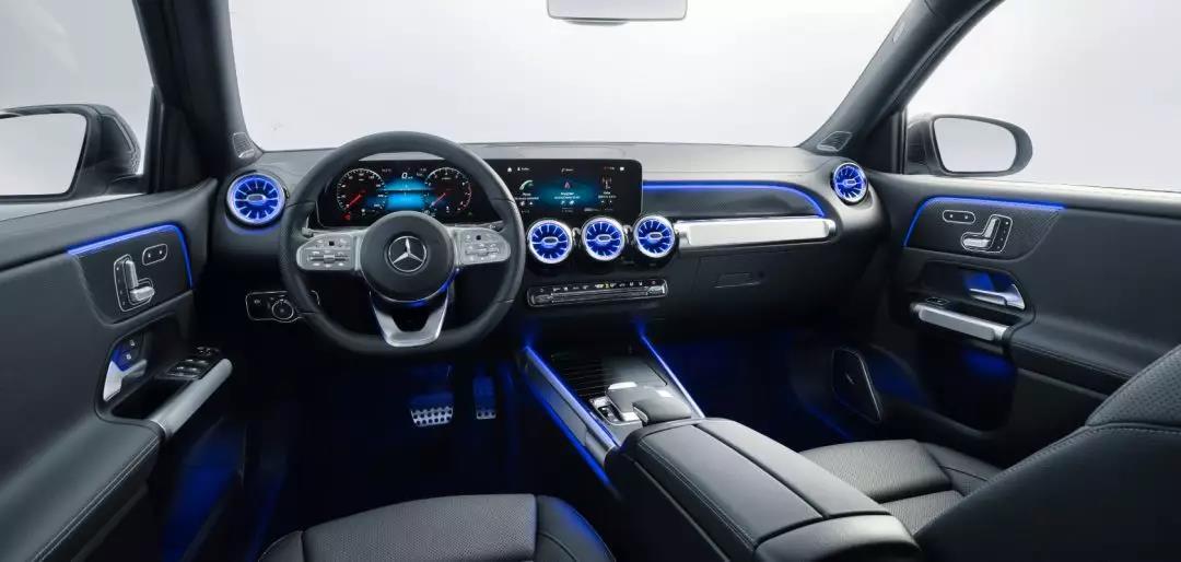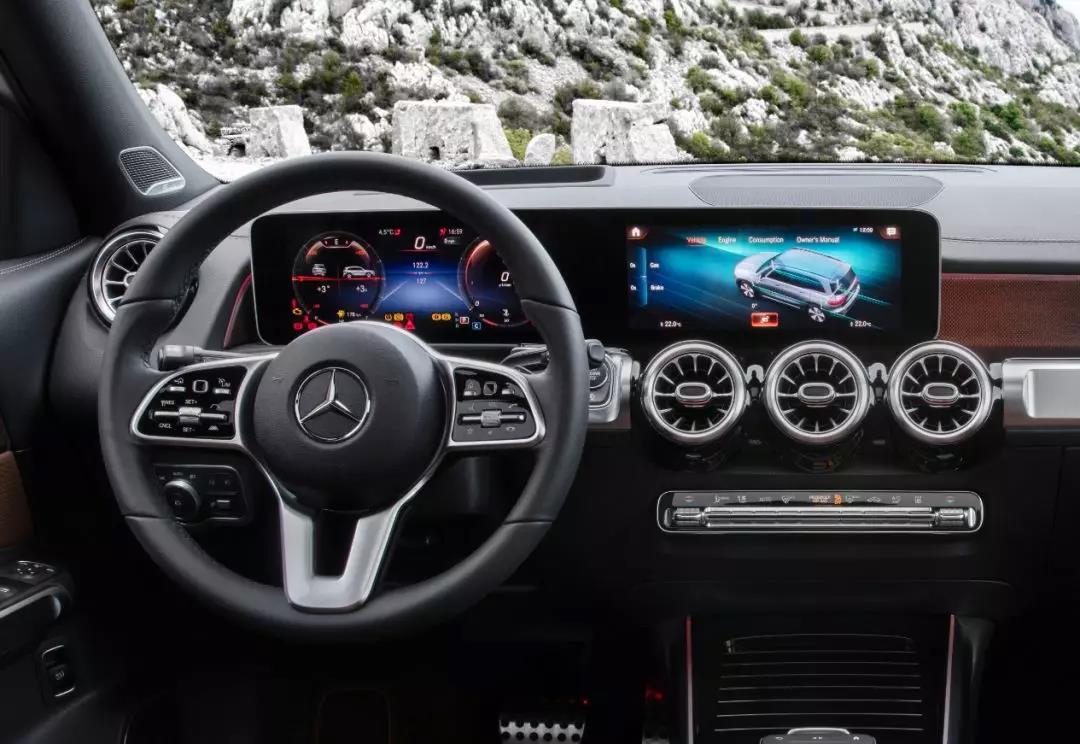 内饰方面,GLB同样采用充满了强悍的越野风格,整体设计显得豪华且又不失科技感。除了真皮包裹的三辐式多功能方向盘、联排双屏、涡扇空调出风口这些经典的设计元素,一体式仪表板还采用了以驾驶者为朝向的弧度设计,并在驾驶位和副驾驶位中间营造出鲜明区隔。中控台上多处工业风十足的铝制管形装饰,以及门板上的抓手装饰等细节设计无不凸显力量感。此物,胡桃木、LED氛围灯以及皮革材质的搭配使用,为内饰更加增添了浓厚的豪华气质。