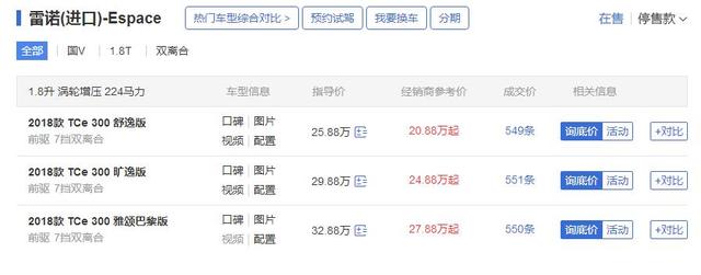 现在环境趋势中的跨界车有许多,但大片车型的样式都有所对照,趋于通用化,并无太多的新意。根本上都是轿车车型与SUV车型之间的跨界打造,而来自于雷诺旗下的雷诺Espace,却是有别于其他车型的另一种想法设计,由于它固然也是跨界车型,但却是在轿车,SUV,以及MPV三种车型之间完成的跨界,身上能够说是兼具了以上三种车型的差别特色。喜欢新鲜感和刺激感的老铁可以看看,而且它的整体售价比一般MPV低很多。据汽车之家的信息,现在这款车有五万元的优惠,只要20万出头就能买到。看图!