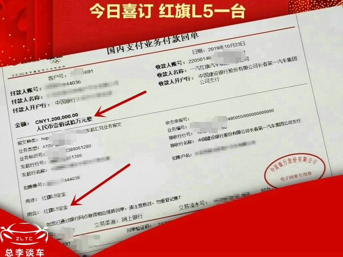 有钱能使鬼推磨,市面上的车千千万,多数车型有钱就能买到,当然,钱也不是万能的,比如限量版和特别版,有钱未必能买到,比如说:早年有人想买恩佐,因为数量有限,买车需要一定的资格,不够资格的人只能买二手车,不管买什么车,一般都是要缴纳定金的,定金的多少是车价决定的,一般的家用车也就千元,如果定金超过万元,这辆车的档次已经算不错了。在国内有一款这样的车,光是定金就要120万,而且买车还不能分期付款,这款车就是红旗L5 (配置|询价)。