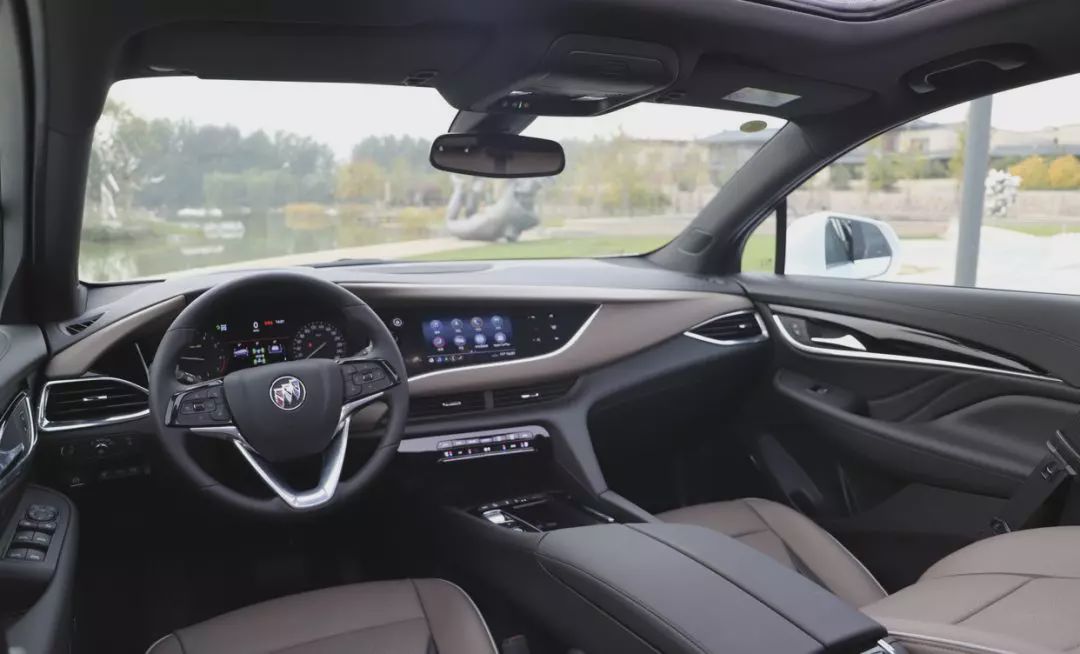 内饰部分,别克昂科旗采用了非对称式的中控设计。内饰整体为双色设计,中控屏幕区域与仪表相连接,同时在驾驶员一侧设置了点火及部分控制按钮,整体造型时尚。同时,新车还配备了按键式换挡机构,位于驾驶员右侧扶手前方的面板上,显得颇有创意。