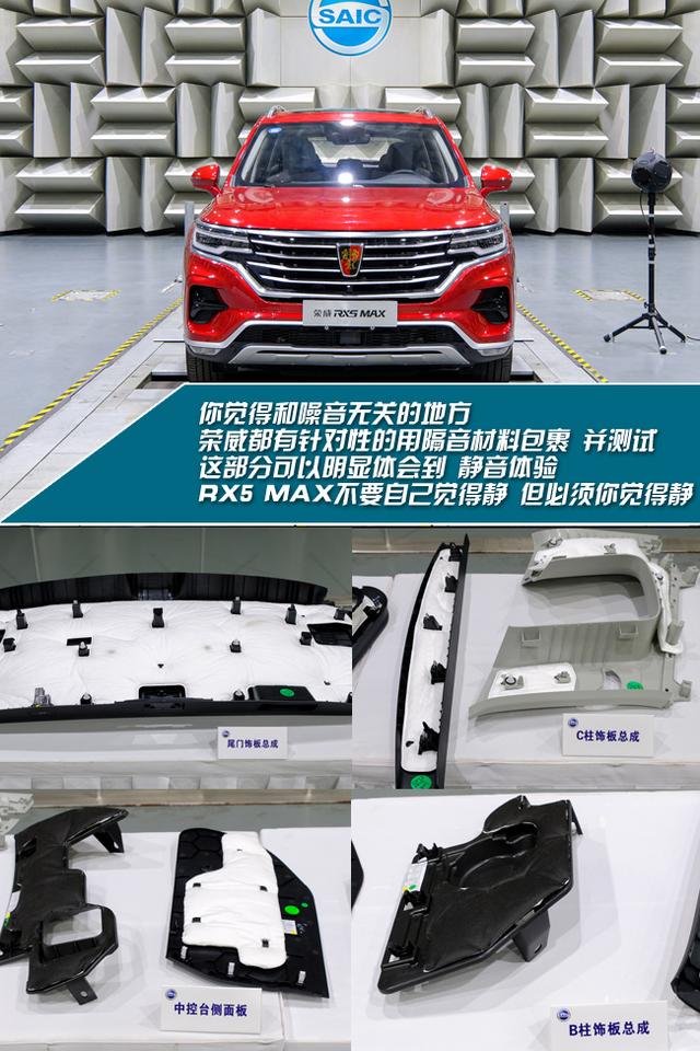 作为上汽荣威2019年重磅车型,智联网硬核中型SUV荣威RX5 MAX非常注重静音表现。荣威RX5 MAX 400TGI车型的怠速噪音测试仅37.4dB,相当于轻声细语;中速60km/h行驶时噪音测试仅57.2dB,相当于用户室内谈话的响度,中高速80km/h行驶时噪音测试仅61dB,响度不超过用户室内谈话,120km/h行驶时噪音测试仅66.4dB,超越市场中同级别的主流合资、自主品牌SUV,让用户无论在高速路段还是城市道路都不受外界干扰,“静”享舒适。那么,优异成绩的背后,荣威RX5 MAX都在那些地方下足了功夫。