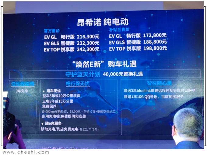 北京现代在2019年开启了新一轮电动化“攻势”,目前已经推出了领动PHEV,年内还将推出昂希诺纯电动以及菲斯塔 (配置|询价)纯电动两款纯电动车型。11月4日,北京现代昂希诺纯电动正式上市,共推出6款配置车型,补贴后官方售价为17.28万-24.23万。新车NEDC续航里程达到500km,超过同级所有合资品牌车型,以及广汽新能源GE3、比亚迪元EV等热门自主品牌产品。此外昂希诺纯电动还享受整车5年或10万公里、核心三电8年或15万公里质保。