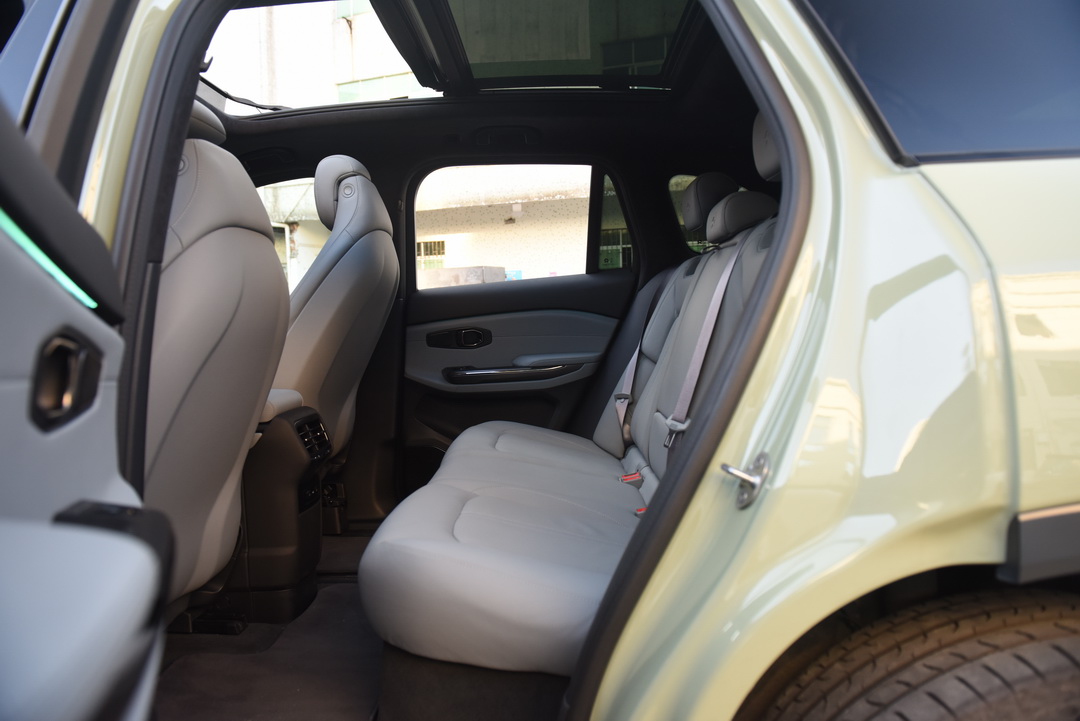 后排座椅另一个值得关注的点就是座椅高度。一般来说纯电动车和轿车的后排座椅高度都会比较低,对大腿的支撑性不足。