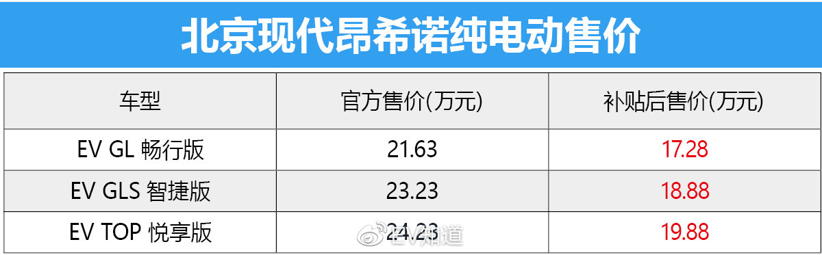 11月4日,北京现代昂希诺纯电动正式上市,新车共推出3款车型,补贴后售价区间为17.28-19.88万元。还特别推出了“守护蓝天”计划:截至2019年12月31日前,购买昂希诺纯电动的用户将享有4万元置换礼遇。作为目前市场上少有的合资纯电SUV车型,三个配置车型到底该如何选择呢?