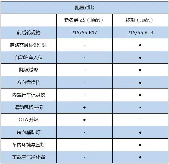 配置方面,在均为顶配(缤越不算轻混车型)的情况下,吉利缤越的配置要明显高一些,并且多出的还是一些比较实用的功能,例如陡坡缓降、交通标识识别、行车记录仪、转向辅助灯等。不过,新名爵ZS也有缤越所没有的配置,如运动风格座椅和OTA升级。当然,这两款车的顶配价格不一样,其中缤越的售价要更高一些。