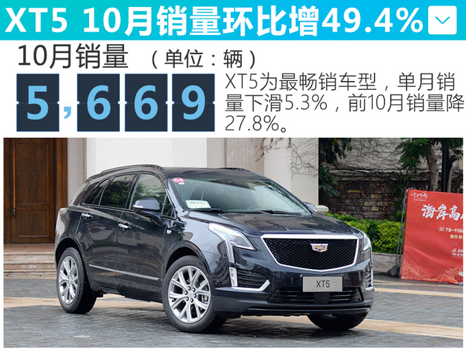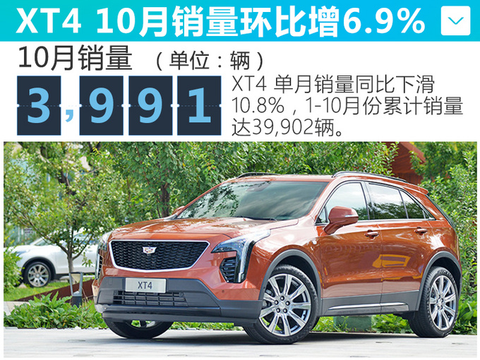 在SUV产品序列中XT5依然是最畅销车型,10月份销量为5,669辆,环比增长49.4%同比下滑5.3%;1-10月份累计销量44,623辆,同比下滑27.8%。XT4车型单月销量为3,991辆,环比增长6.9%同比下滑10.8%,今年累计销量达39,902辆。另外7月份上市的XT6车型累计销量达8,193辆。