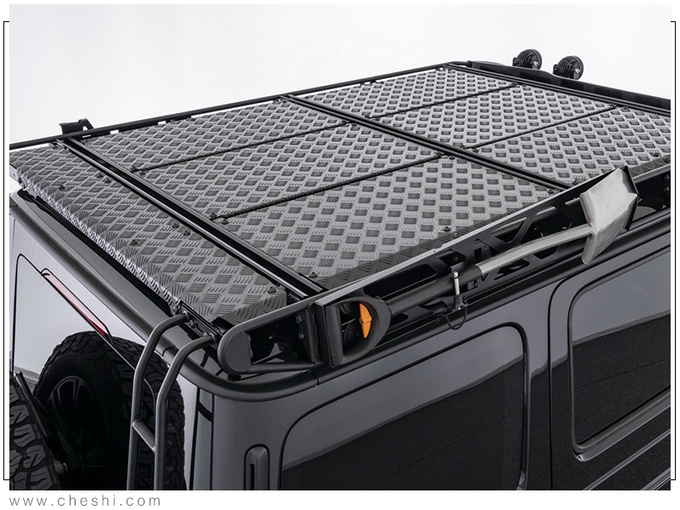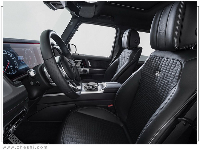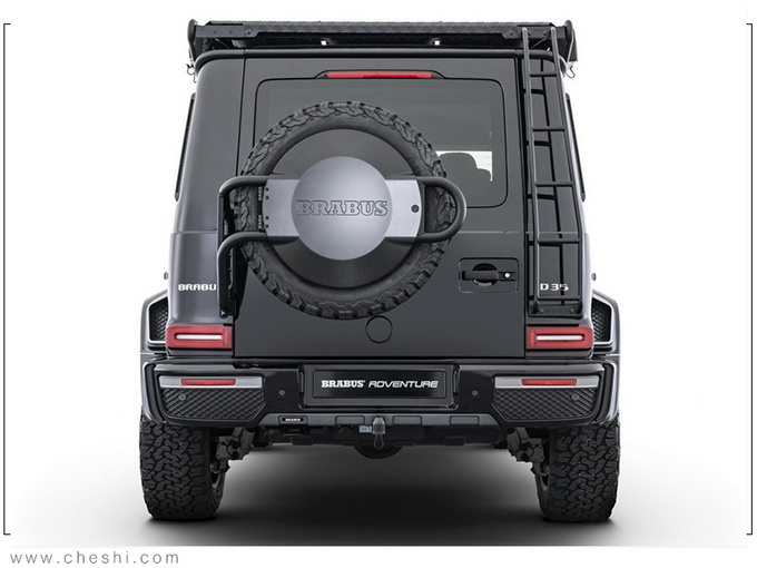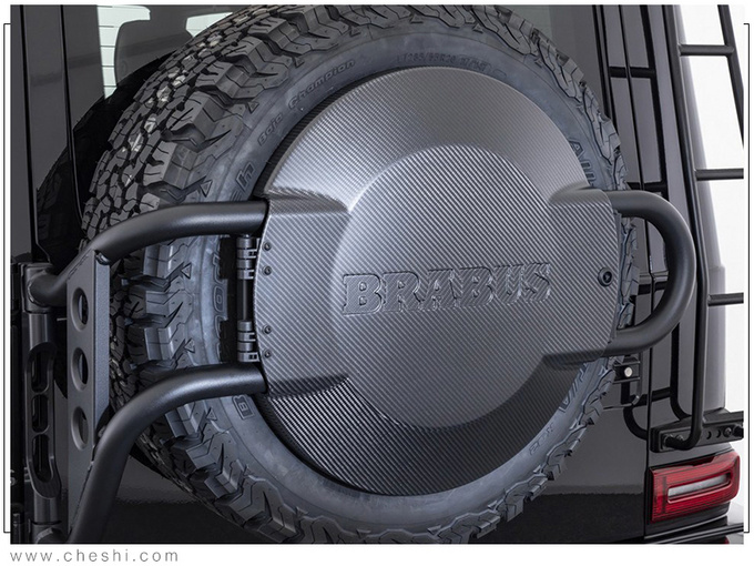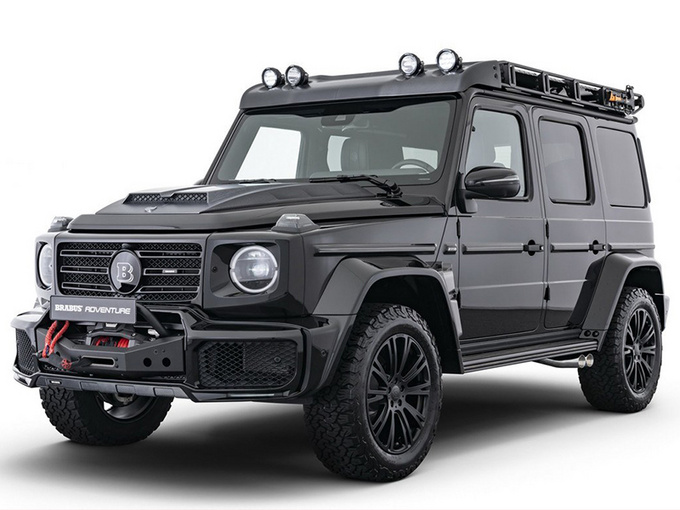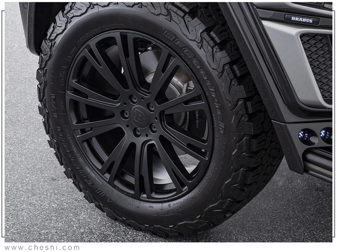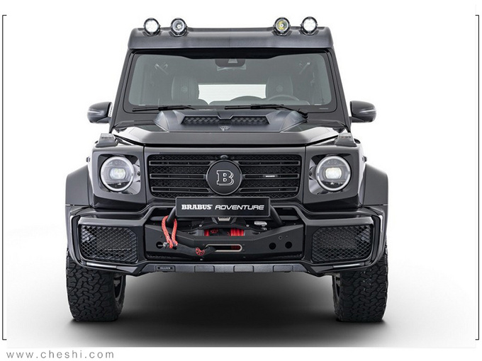 外观方面,新车前脸装配定制的Brabus Widestar格栅,两侧配有大尺寸进气口,中部为绞盘,引擎盖上方配备碳纤维进气口,挡风上方配有四个高强光LED大灯,车顶为金属材质。车身侧面选用20英寸Brabus Monoblock R铝合金轮毂与BF Goodrich轮胎的搭配,配备的空气悬架,可最多使底盘升高40mm,进一步提升越野能力。