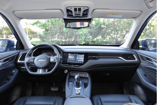 此外,哈弗F7的尾部同样充满了设计感,尾门上方的横贯式镀铬饰条,为时下主流元素,尾灯造型与大灯呼应,下方带有镀铬环绕的双边共两出排气仅为装饰,实际为隐藏式布局。走进车内,哈弗F7车内造型应该属于目前哈弗家族中最具时尚气息的了,不规则的中控台造型,采用了内凹式处理,中控触屏略向驾驶员一侧倾斜,带来更强烈的操控感。