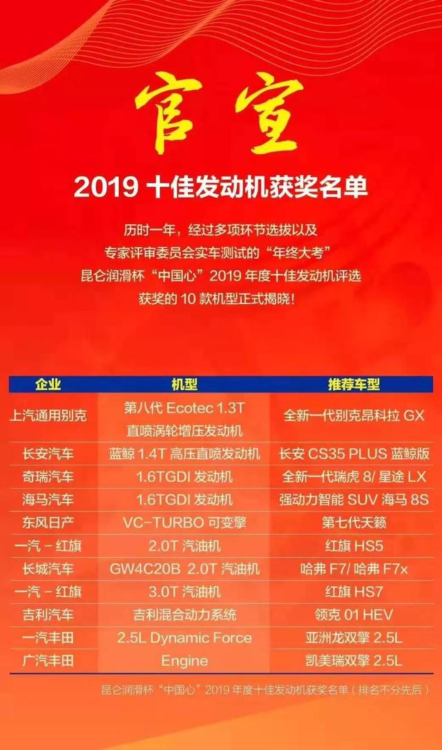 近日,有中国汽车发动机行业“奥斯卡”之称的“中国心”2019年度十佳发动机名单公布。