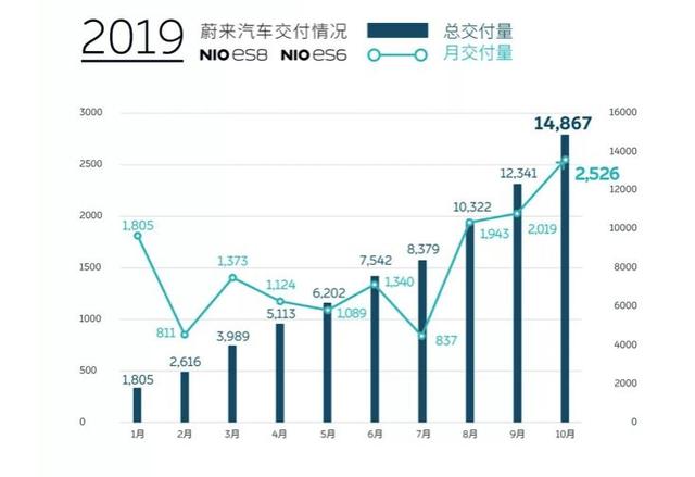 昨天下午,蔚来方面公布最新的销售数据,10 月交付量达2526 台,创2019年新高,环比上涨25%,同比增长61%。