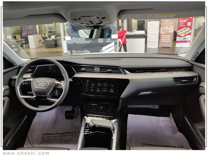 e-tron采用奥迪SUV家族最新设计语言,前脸配备八边形进气格栅,两侧高清LED矩阵式大灯内部融入了带状日行灯。新车风阻系数仅为0.28Cd,快/慢充接口分别位于两侧前翼子板处,车尾配备贯穿式LED灯组。奥迪e-tron“三屏”内饰设计极具科技感,12.3英寸液晶仪表可进行不同显示模式的切换,中控区域配备尺寸分别为10.1英寸、8.6英寸的高清触摸屏,分别用于控制信息娱乐、导航系统,以及空调、座椅加热等功能。