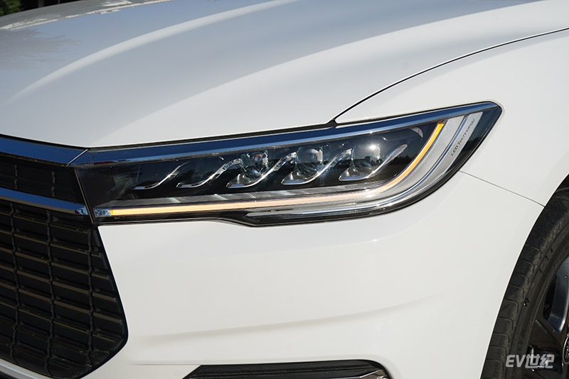 与老款不同,全新秦EV的前大灯变换得和秦Pro一样采用阵列式单体布局,5枚LED单体灯一字排开,内侧2枚为远光灯,外侧3枚为近光灯。新的LED灯组看上去纤细、狭长,不仅辨识度高,还能提供更好的照明效果。