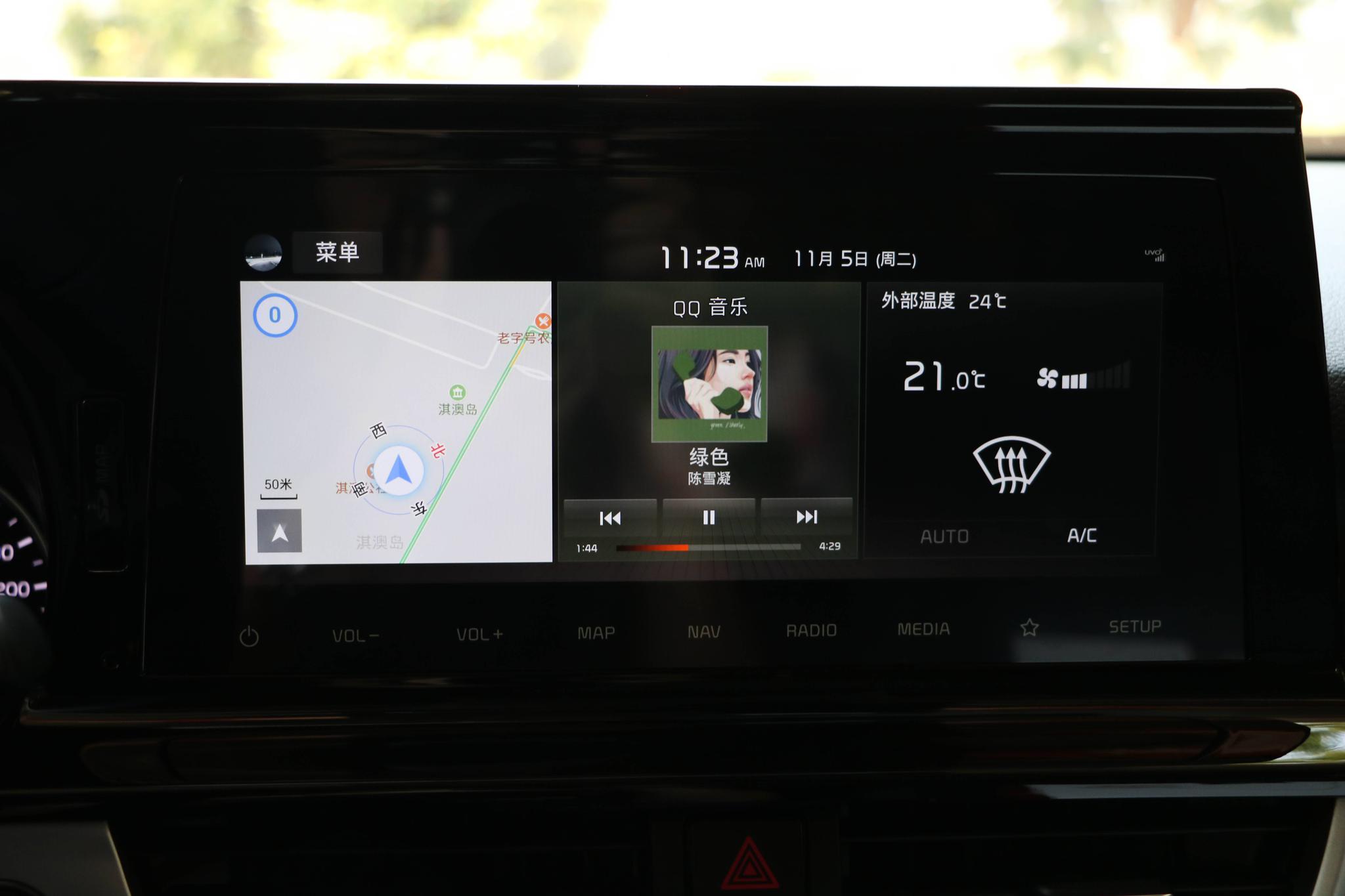 中控屏的主界面被清晰地分为三个部分,分别是导航、音乐和空调,具有学习成本低、上手快的优点。屏幕的最底端还有音量加减、地图、媒体等快捷键,这让地图和媒体两个部分可以任意切换,减少了驾驶员的注意力在屏幕上的停留时间。