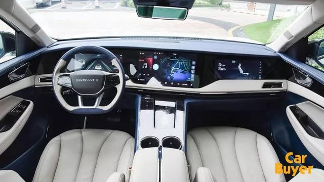 该车在座舱内最抢眼的要当属车内呈现7字形的三块大尺寸屏幕,分别为全液晶仪表、中控液晶屏和挡把前方负责空调控制的屏幕,在减少大量实体按键的同时,让新车科技感得到很大的提升。