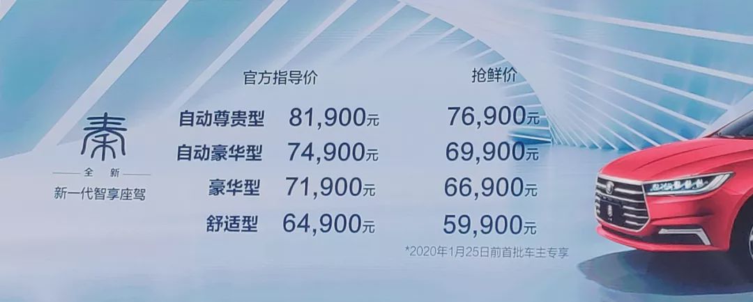 11月5号的晚上,快车报在北京昆仑决世界搏击中心参加了比亚迪全新秦/全新秦EV的上市发布会,先说重点,其中比亚迪全新秦的售价为6.49-8.19万元,全新秦EV的补贴后售价为12.99-13.99万元。如果你在2020年1月25日前购买比亚迪全新秦,就可以享受5000元的现金优惠,抢鲜价只要5.99-7.69万元。