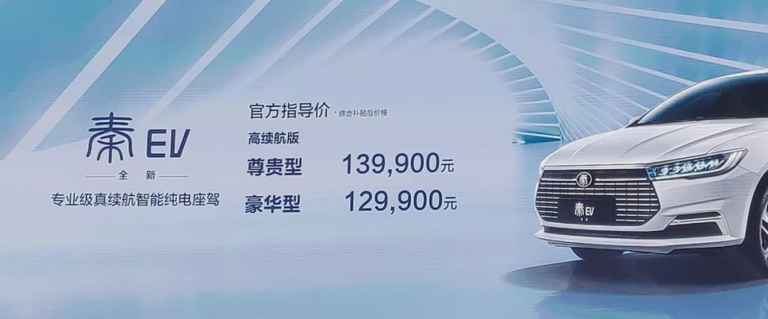 ▶比亚迪全新秦EV (配置|询价)补贴后售价为12.99-13.99万元