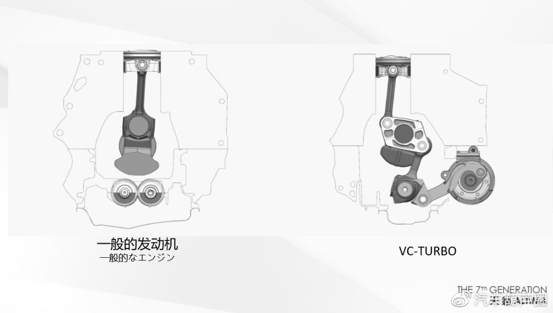 正是源于这套创新性的多连杆结构,为2.0 VC-TURBO超变擎发动机赋予了更多可能。众所周知,目前市面上的汽油发动机都采用的是固定压缩比,因此最终结果要么是侧重省油取向的高压缩比发动机,要么是侧重性能取向的低压缩比发动机。