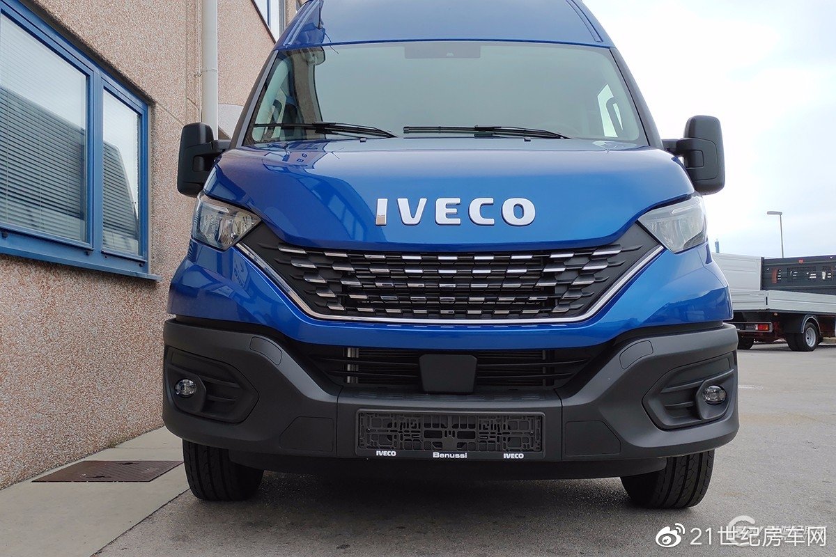 从外观设计上来说,2020款进口依维柯底盘总体的设计语言变化并不大,前脸依然是双U型的设计语言,相较于上一代车型,双U型的前脸越来越倾向于双V型设计了,突出前脸线条的硬朗程度。实际上,由2018款车型前脸的蜂窝状进气格栅改为2019款横条状的进气格栅之后,前脸变得柔和了很多,但是到了2020款的车型前进气格栅又开始向老款靠拢,蜂窝状的格栅又得以沿用,只不过格栅的线条越来越犀利也越发精致了。