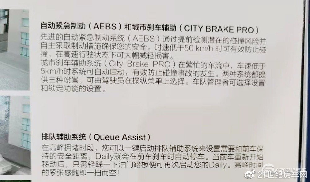 2020款进口依维柯New Daily驾驶室内的改动是比较大的,方向盘更加的精致,并且融入了乘用车方向盘设计元素,给用户更好的握持感。仪表盘相比之前精致了不少,银灰色的圆形边缘,仪表板背景灯也改为了白色,中间显示器尺寸增大,越来越接近乘用车的设计,中控面板整体变化不大,依然适配7英寸显示屏,带有镜像功能,适用于Apple CarPlay和Android Auto控制。新款进口依维柯最大的升级还属驾驶辅助和安全性能配置方面,新款底盘配备了整套先进驾驶辅助系统,包括自动紧急制动、城市刹车辅助、排队辅助系统、自适应巡航系统、自动车道保持辅助系统、侧风车身稳定系统、陡坡缓降系统、实时胎压监测系统以及牵引力控制系统等。另外驾驶方面,新的电子助力转向系统可使方向盘转向省力70%,驾驶感受更加接近轿车。