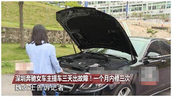 广东深圳魏女士,2019年3月12日提的奔驰E200 L,3月16日下午发现车辆仪表盘显示水液过高,冷却液异常。后来经4S店检测发现,车辆系发动机系统故障。维修过后的4月3日和4月8日,车辆再次出现同一故障,退车未果的魏女士在官网发帖投诉,但没多久这则投诉的帖子就被删除了。