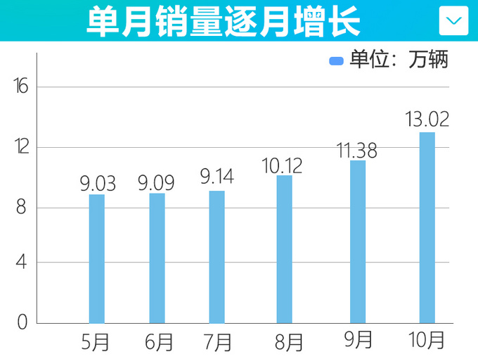 轿车方面,全新帝豪10月销量18,379辆,1-10月总销量167,848辆,继续位居中国品牌轿车销冠。主打运动风格的轿车缤瑞 (配置|询价)本月创记录,单月销量7,763辆,相比今年前几个月取得了较大突破。领克汽车10月销量达14,038辆,环比增长3%,呈持续增长态势。其中领克03家族在9月销量首次突破六千大关后,10月再攀新高,热销7,028辆,环比增长8%。