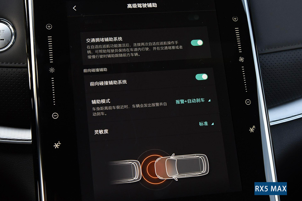 除了AR-Driving功能外,荣威RX5 MAX搭载的AI Pilot同样值得仔细介绍,其拥有ACC全速域自适应巡航、AEB自动紧急刹车、FCW前方碰撞预警、LKA车道居中保持、LDW车道偏离预警、TJA交通拥堵辅助、ICA高速智能巡航、SAS智能速度辅助、IHC智能大灯控制等多项主动安全辅助配置,并可实现在高速、环路中的自动跟车与过弯。使用AI Pilot的过程中,车辆加速与刹车动作非常自然,通过弯道时也非常像老司机的驾驶技术,可放心的将车辆交给系统控制。