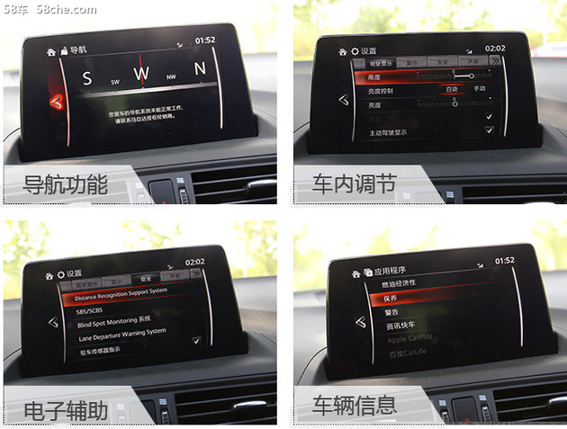 内饰中另一个重大变化就是中控屏幕尺寸由老款的7英寸升级为8英寸,明显看起来更轻松,但显示内容没有变化。车辆的信息、电子辅助、氛围灯调节、导航音响等功能都在中控屏幕上调节。