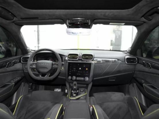 内饰方面,领克03+的内饰充满了欧缔兰面料,仪表台、车门、车顶、方向盘还有挡杆上,都能看到欧缔兰的身影,用料太实在了。三辐式方向盘也改用了更加运动的设计,多功能按键由全新的“镀铬黑”装饰件所覆盖,外加造型更夸张的换挡拨片,视觉冲击力不小。
