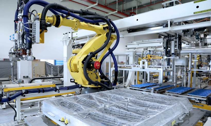 ◆ 电池装配车间:可制造全铝电池壳体