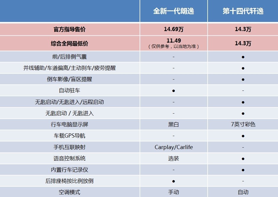 朗逸DSG舒适版(14.69万)和轩逸CVT奢享版(14.30万)展开对比。
