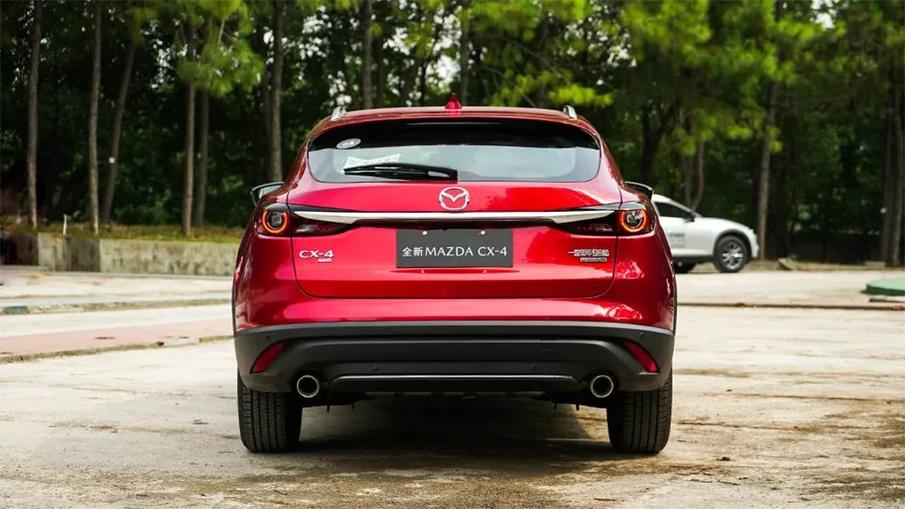 车尾部分,黑底的LED尾灯搭配重新设计的后包围,相比旧款车型更加简洁;双边单出的排气与尺寸适中的底部扩散器进一步凸显了新车的运动气质。此外,CX-4的车名标识字体与旧款也略有不同,换成了马自达最新的官方字体。