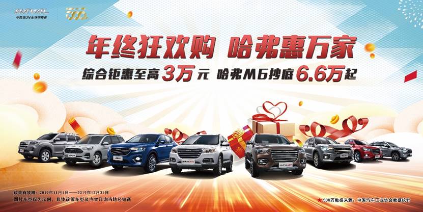 毕竟这款车无论是性能还是空间,那都是无可挑剔的,但是别着急,神车要有神车的态度,哈弗H6运动版推出“年终狂欢购 哈弗惠万家”系列钜惠促销活动,购车用户,可享受至高30000元的超值钜惠,你可以带着这款满足国六排放法规标准且拥有“世界十佳变速器”的国民神车回家了。