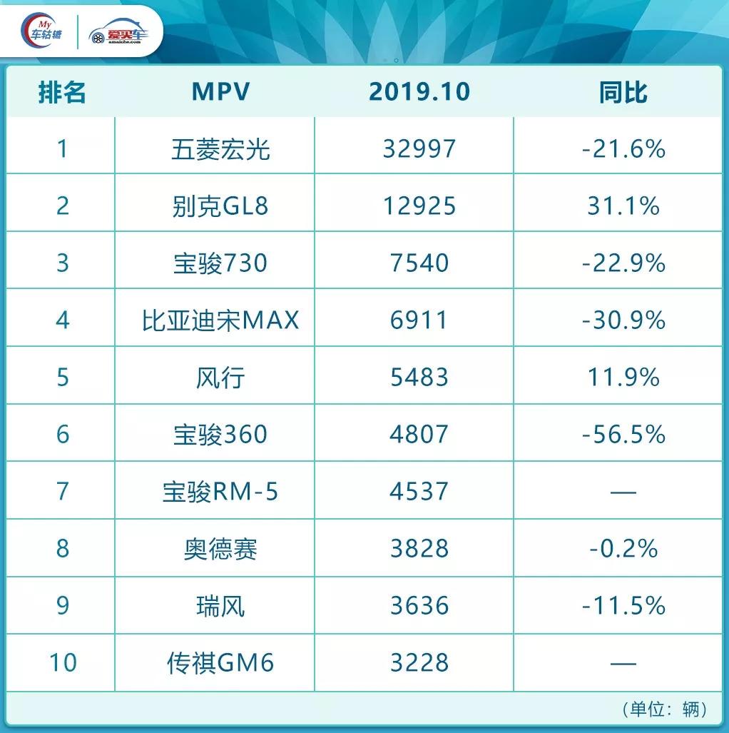 在MPV榜单中,排名前三的车型依旧是五菱宏光、别克GL8以及宝骏730。同时,这三款车型中也依旧只有别克GL8保持正增长,其余都有两位数的大幅下滑。
