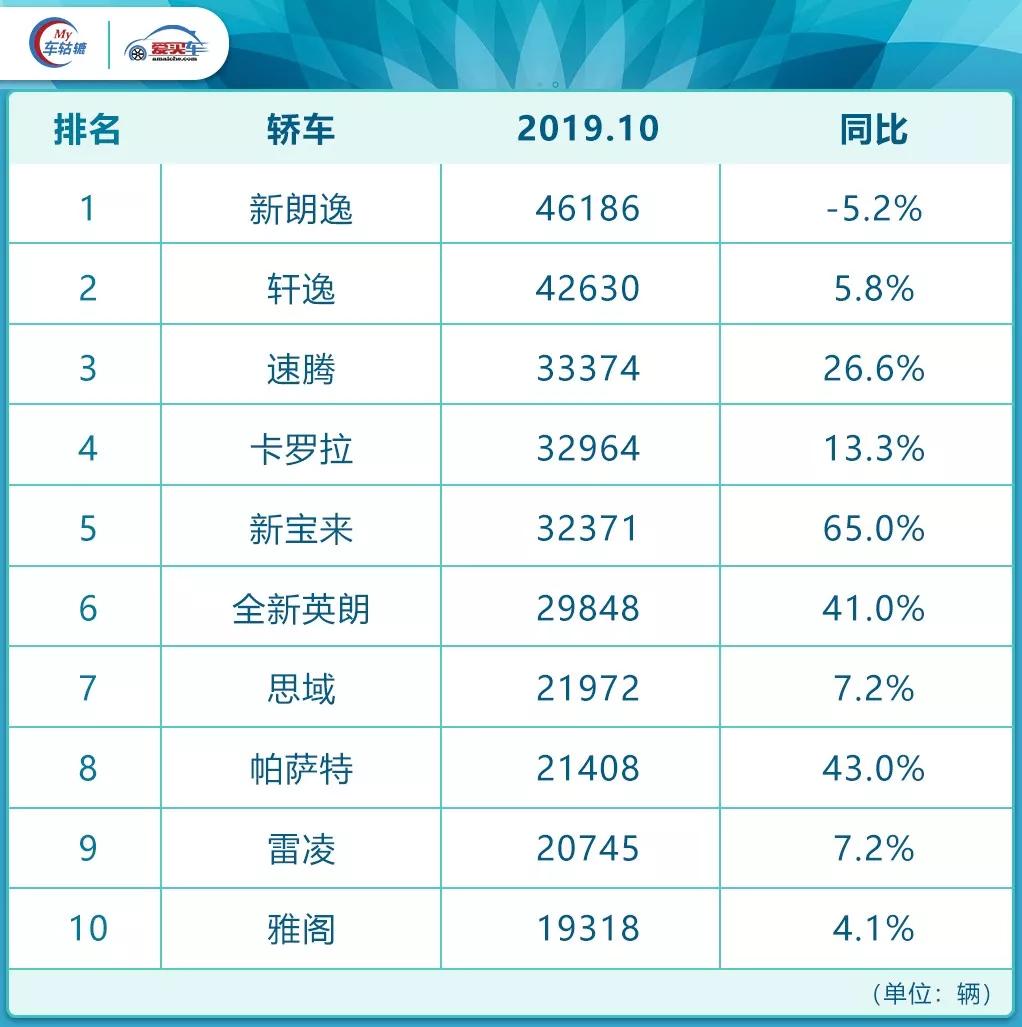 10月份,新朗逸以46186辆的成绩稳居第一,不过相较去年同期却有小幅度的下滑,也成为前十名中唯一出现下滑的车型。