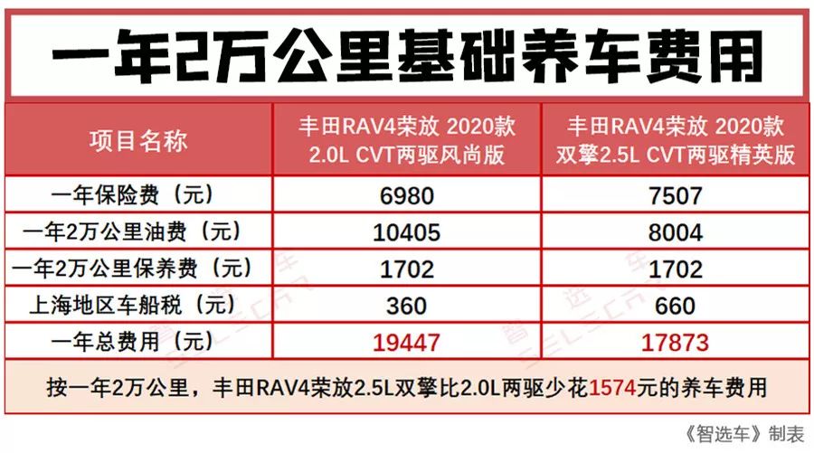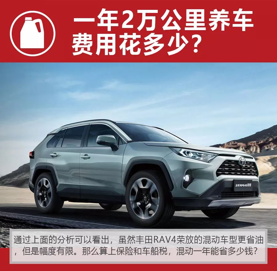 最终结合保险费、油费、车船税,按照一年2万公里计算,全新丰田RAV4荣放的2.5L混动车型预计比2.0L自然吸气车型节约1574元的养车费用。按照4万元的购车差价,至少需要25年才能回本,这是一个漫长的过程。