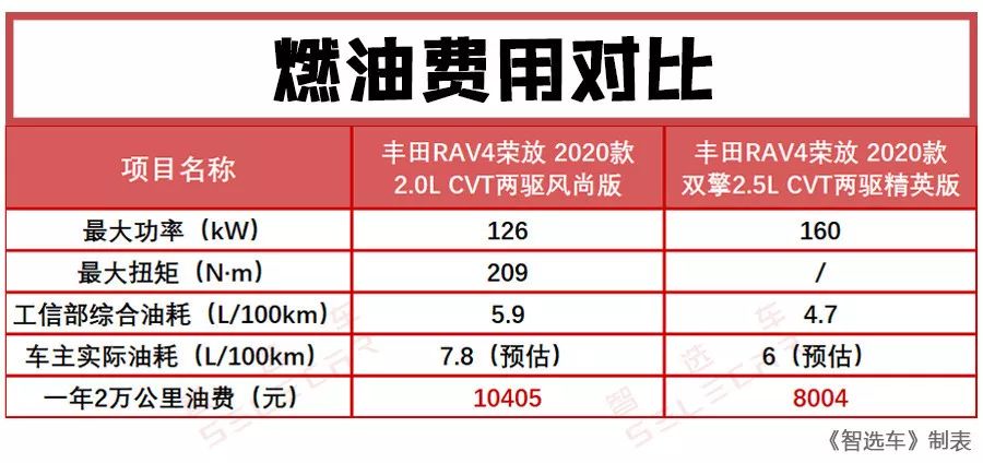 20万元买台合资SUV,要求省油耐用,很多人会把目光转向日系车型。丰田RAV4 (配置|询价)荣放在大家的印象中正是20万级日系SUV的代表之一,前不久它迎来了全新换代,在市场上自然也是备受瞩目。目前,全新丰田RAV4有2.0L自然吸气动力和2.5L双擎混动车型可选,那么它们的购车成本和养车费用相差多少?本期的《钱车之鉴》栏目,小智帮你好好算笔账。